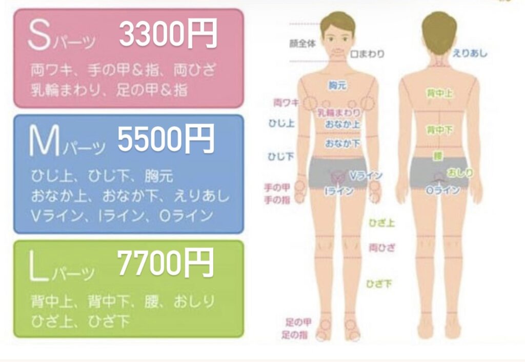 ※サロンで処理をする際、身体の各部位ごと1,000円がかかります